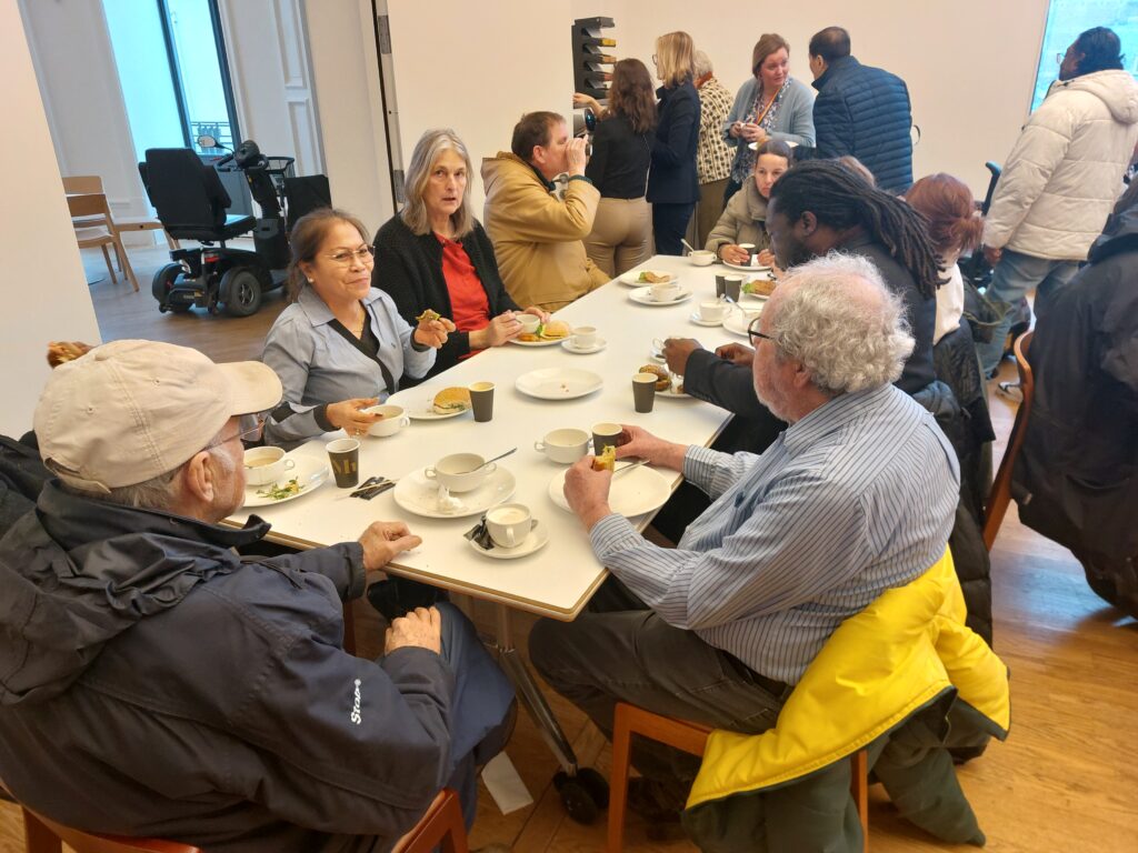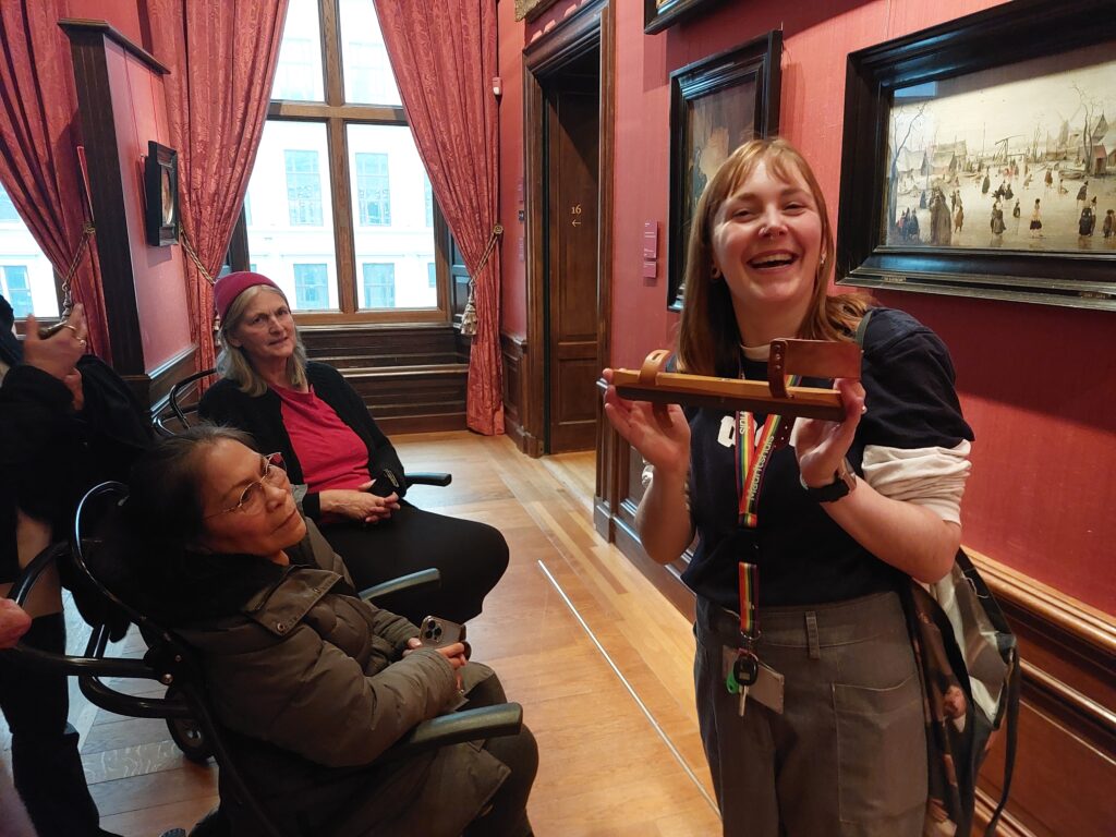 In het Mauritshuis werden we hartelijk ontvangen door de directeuren en veel medewerkers. We kregen een geweldig lekkere lunch aangeboden en gingen daarna in kleinere groepen uiteen voor een rondleiding. Alleen het gebouw al maakte veel indruk! We kregen wat te horen over de geschiedenis van het Mauritshuis en natuurlijk over een aantal schilderijen. Een enthousiaste gids inspireerde ons om goed te kijken en dat deden we. Met elkaar ontdekten we van alles. Sommige schilderijen riepen verhalen en herinneringen in ons op die we met elkaar deelden. Bijvoorbeeld bij het winterlandschap van Hendrick Avercamp kregen we het met elkaar over schaats- en winterherinneringen vooral toen onze gids een ouderwetse schaats, een Friese doorloper, bij zich bleek te hebben. Het was weer een onvergetelijke middag.